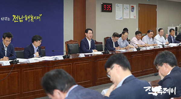 <김영록 지사가 지난 31일 오전 도청 서재필실에서 공사·출연기관 정책회의를