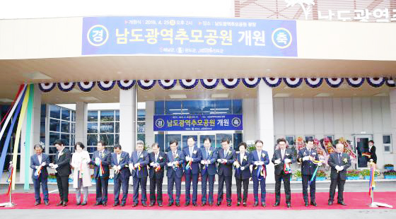 이날 황산면 원호리 남도광역추모공원 한울원 앞 광장에서 명현관 해남군수, 신우철 완도군수, 이동진 진도군수 등 3개군 군수를 비롯한 군의원, 박병호 전라남도 행정부지사 및 도의원, 윤영일 국회의원, 기관단체, 지역주민 등 500여명이 참석한 가운데 남도광역추모공원 개원식을 가졌다.