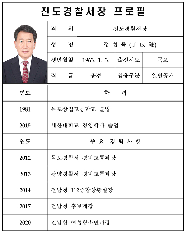 [프로필] 정성록 제79대 진도경찰서장 부임 좋아요 이메일 퍼갈게요 진도투데이 다른 기사보기 저작권자 © 진도투데이닷컴 무단전재 및 재배포 금지 라이브리 댓글 작성을 위해 JavaScript를 활성화 해주세요