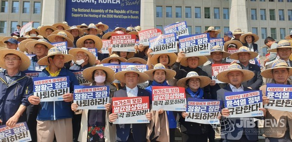 이날 국회 본청 앞에서 진행된 행사는 국회 농림축산식품해양수산위원회 소속 민주당 국회의원, 민주당 전국농어민위원회, 농민단체 등이 공동 주최 했다.