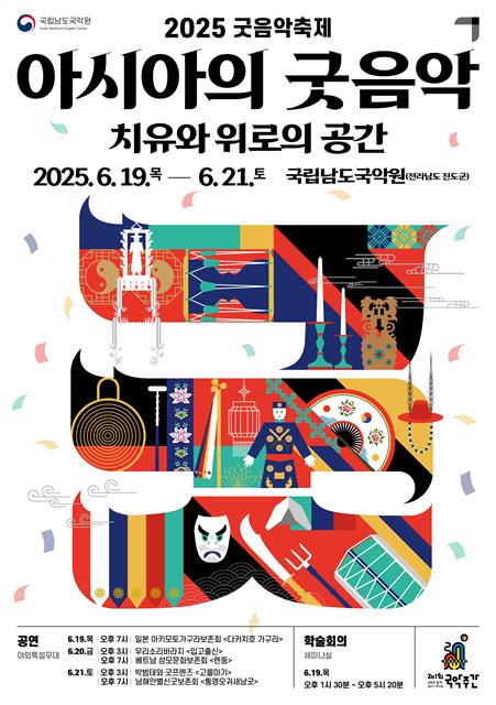 국립남도국악원(원장 박정경)은 “오는 19일(목)부터 21일(토)까지 사흘간 ‘2025 굿 음악 축제’를 개최 한다”고, 밝혔다. 올해 축제는 ‘아시아의 굿음악: 치유와 위로의 공간’을 주제로 국적도, 시대도 넘는 다채로운 무대와 학술 행사, 그리고 신명나는 체험이 준비됐다.