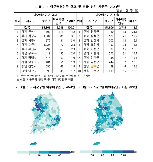 특히, 완도군과 진도군은 전체 인구의 10%를 넘어서며, 전국에서도 이주 배경 비율이 높은 지역으로 꼽혔다.